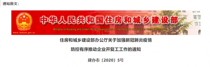 為深入貫徹總書記在統(tǒng)籌推進新冠肺炎疫情防控和經(jīng)濟社會發(fā)展工作部署會議上的重要講話精神,認真落實黨中央、國務院有關(guān)決策部署,加強房屋建筑和市政基礎設施工程領(lǐng)域疫情防控,有序推動企業(yè)開復工,現(xiàn)就有關(guān)事項通知如下: