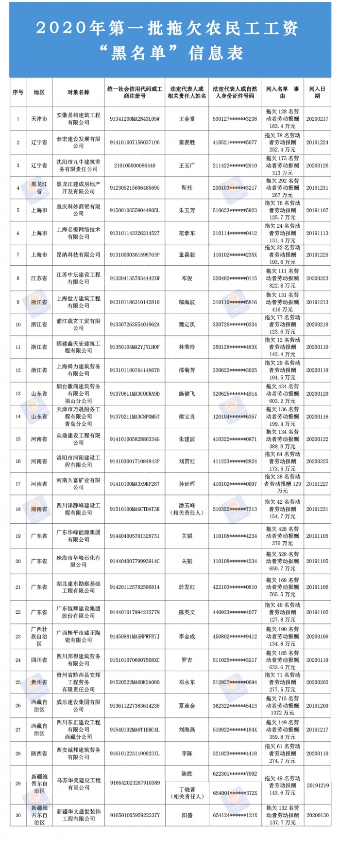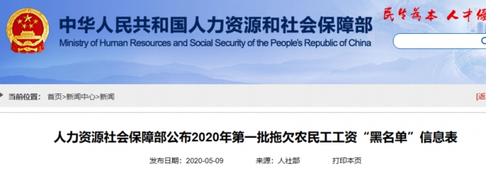 2020年第一批拖欠農(nóng)民工工資“黑名單”