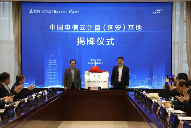簽約儀式上,市委常委、副市長劉曉軍和電信陜西分公司總經(jīng)理葉利生代表雙方為中國電信云計(jì)算(延安)基地揭牌。