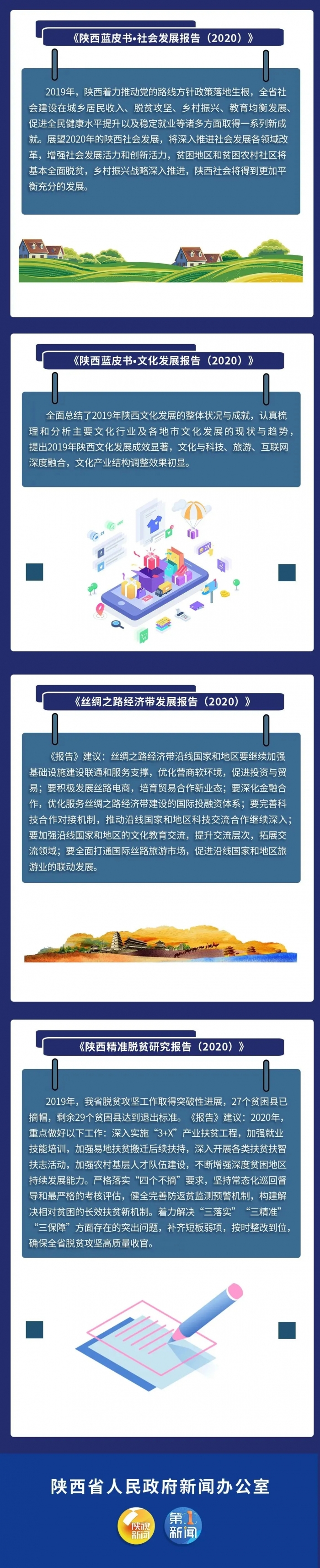 本次發(fā)布的《2020年陜西藍(lán)皮書(shū)》包括5本,分別是:《陜西經(jīng)濟(jì)發(fā)展報(bào)告(2020)》《陜西社會(huì)發(fā)展報(bào)告(2020)》《陜西文化發(fā)展報(bào)告(2020)》《絲綢之路經(jīng)濟(jì)帶發(fā)展報(bào)告(2020)》和《陜西精準(zhǔn)脫貧研究報(bào)告(2020)》,均由社會(huì)科學(xué)文獻(xiàn)出版社于日前正式出版。