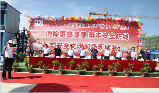 5月29日,由延安市新區(qū)住房和城市建設(shè)局主辦的第19個安全生產(chǎn)月宣誓暨“消除事故隱患 筑牢安全防線”安全文明現(xiàn)場觀摩會在陜建十三建公司清華大學附屬中學延安學校項目舉行。