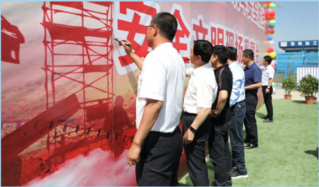 全體人員進行安全承諾宣誓并在背景墻簽字承諾