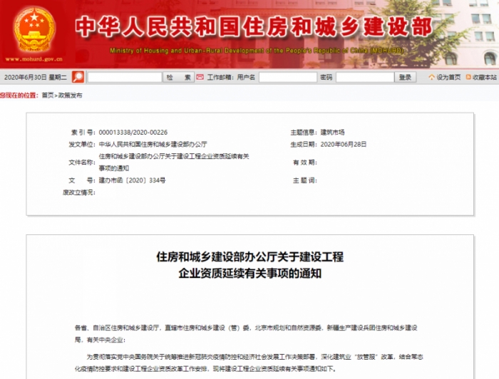 2020年7月1日前,住建部已受理的資質(zhì)延續(xù)申請事項,不再進行審批,相關(guān)資質(zhì)證書有效期延期至2021年12月31日。