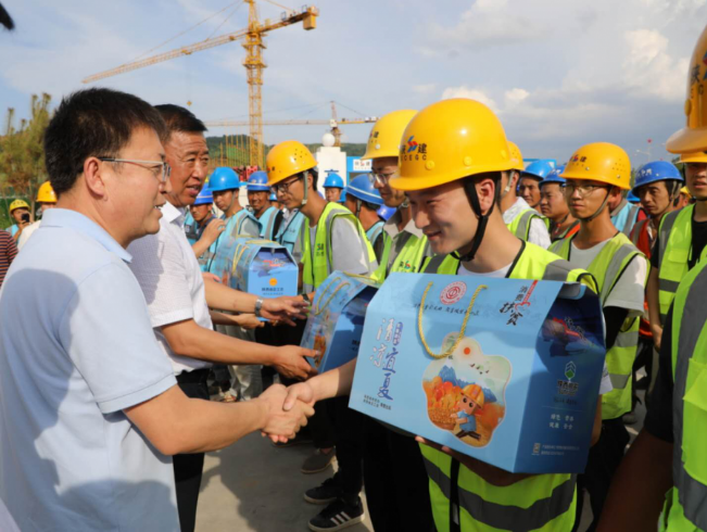 8月10日,延安市政協(xié)副主席、市總工會(huì)黨組書記、主席黑樹(shù)林一行來(lái)到陜建十三建公司南泥灣紅色文化小鎮(zhèn)項(xiàng)目慰問(wèn)項(xiàng)目一線建設(shè)者,為他們送去茶葉、蜂蜜、綠豆、小米等防暑降溫物品。市總工會(huì)副主席、女職委主任鄭艷霞,南泥灣開(kāi)發(fā)區(qū)黨工委副書記折克銀,市總工會(huì)辦公室副主任、困難職工幫扶中心主任惠瑞國(guó),市總工會(huì)辦公室副主任、宣教部負(fù)責(zé)人康靖華,陜建十三建公司紀(jì)委書記、工會(huì)主席張軍祥出席活動(dòng)。