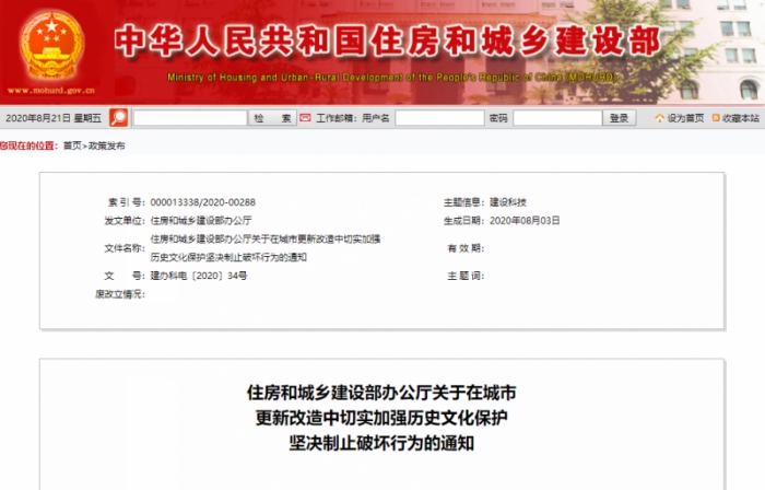 據(jù)了解,具有保護(hù)價(jià)值的城市片區(qū)和建筑是文化遺產(chǎn)的重要組成部分,是弘揚(yáng)優(yōu)秀傳統(tǒng)文化、塑造城鎮(zhèn)風(fēng)貌特色的重要載體。保護(hù)好、利用好這些珍貴歷史文化遺存是城鄉(xiāng)建設(shè)工作的使命和任務(wù)。但是,近期一些地方在城市更新改造中拆除具有保護(hù)價(jià)值的城市片區(qū)和建筑,對(duì)城市歷史文化價(jià)值和特色風(fēng)貌造成了不可挽回的損失。為了在城市更新改造中進(jìn)一步做好歷史文化保護(hù)工作,住建部要求: