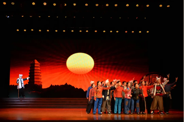 歌舞劇《南泥灣》以陜北青年腰鼓、窗花為男女主人公,通過安塞腰鼓、陜北說書、陜北民歌等典型黃土風情文化元素,展示陜北元素,講述紅色故事,全方位、多角度地展現(xiàn)了上世紀4 0 年代初發(fā)生在南泥灣轟轟烈烈的大生產運動以及在大生產運動中產生的“自力更生、艱苦奮斗”的南泥灣精神,傳頌勞模精神、禮贊工匠精神、弘揚延安精神。