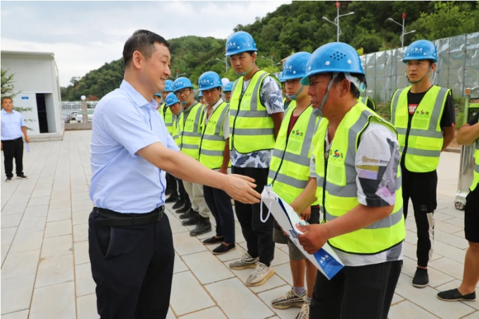 7月20日,陜建集團(tuán)企業(yè)發(fā)展部部長齊偉紅,后勤事務(wù)管理中心副主任張棟一行來到集團(tuán)寶塔區(qū)水系連通及農(nóng)村水系綜合整治試點項目開展“夏送清涼”慰問活動,集團(tuán)副總經(jīng)理鐘卓寶、張鑫偉陪同。