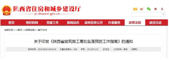 關(guān)于印發(fā)《陜西省建筑施工高處墜落預(yù)防工作指南》的通知