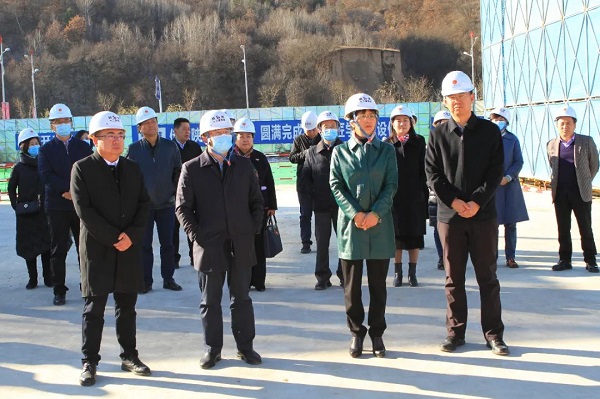11月10日,延安市委常委、統(tǒng)戰(zhàn)部部長楊宏蘭,延安市政協(xié)副主席藺廣東一行到陜建十三建集團承建的延安南泥灣勞模工匠學院項目檢查指導(dǎo)。