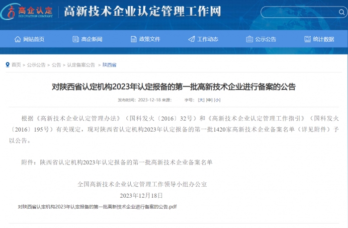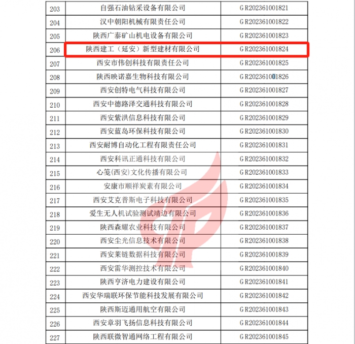 近日,全國高新技術(shù)產(chǎn)業(yè)企業(yè)認(rèn)定管理工作領(lǐng)導(dǎo)小組辦公室公布了2023年陜西省認(rèn)定的第一批高新技術(shù)企業(yè)名單,集團新型建材產(chǎn)業(yè)基地【陜西建工(延安)新型建材有限公司】通過國家級高新技術(shù)企業(yè)認(rèn)定。