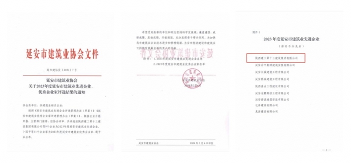 近日,延安市建筑業(yè)協(xié)會公布了2023年度延安市建筑業(yè)先進(jìn)企業(yè)、優(yōu)秀企業(yè)家評選結(jié)果,陜西建工第十三建設(shè)集團(tuán)有限公司被評為2023年度延安市建筑業(yè)先進(jìn)企業(yè);集團(tuán)總工程師、新型建材公司黨支部書記、董事長王弘起被評為優(yōu)秀企業(yè)家。