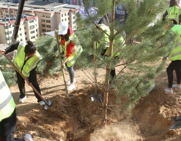 期間,大家互相配合,有的揮鍬鏟土、有的扶樹填土,忙的不亦樂乎。經(jīng)過一個(gè)多小時(shí)的努力,40多顆松樹在長(zhǎng)青路觀景臺(tái)“安家落戶”,為那里添上了一片新綠。